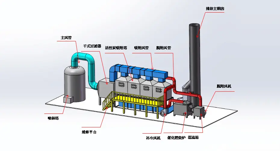 汽車廠有哪些廢氣處理設(shè)備,針對汽車涂裝車間產(chǎn)品產(chǎn)生的廢氣,汽車涂裝生產(chǎn)線的廢氣濃度普遍偏高,對于偏高濃度的廢氣可以考慮以下幾種技術(shù)進(jìn)行解決: 1.預(yù)處理+活性炭吸脫附+催化燃燒(單次投入較小,但長期維護(hù)成本略高) 2.預(yù)處理+蓄熱式焚燒爐(RT0)工藝(單次投入較大,但長期維護(hù)成本低)