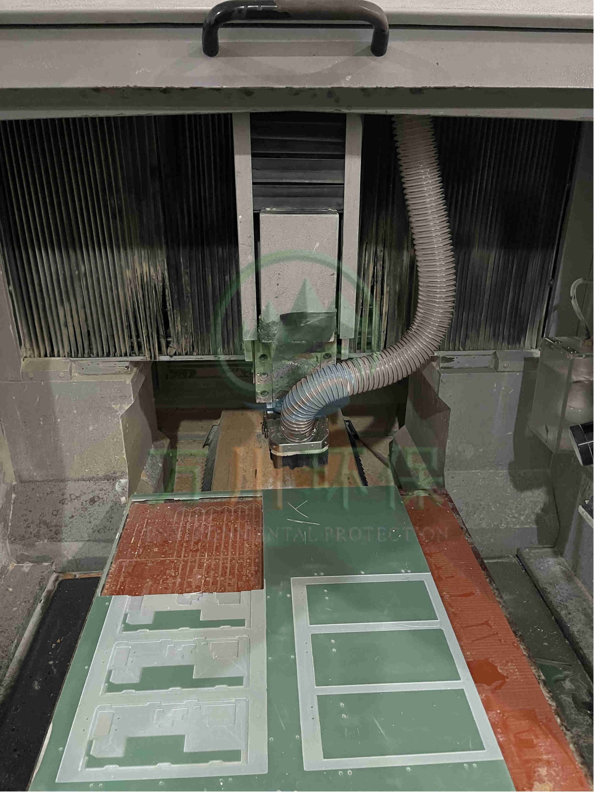 精雕機工作時產(chǎn)生的粉塵通過集氣罩、吸塵軟管進入到脈沖布袋除塵器中過濾凈化,粉塵落入灰斗,凈化后的廢氣通過系統(tǒng)風機達標排放。