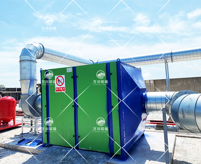 橡膠廢氣中含有一定量的粉塵,所以處理廢氣之前要做預處理,要使用噴淋系統進行清洗才可以進行后續的處理,先把粉塵去除,這樣做才不會影響后續設備的運行。根據廢氣的性質和以往的工程經驗,我們采用了噴淋活性炭吸附一體化設備去處理